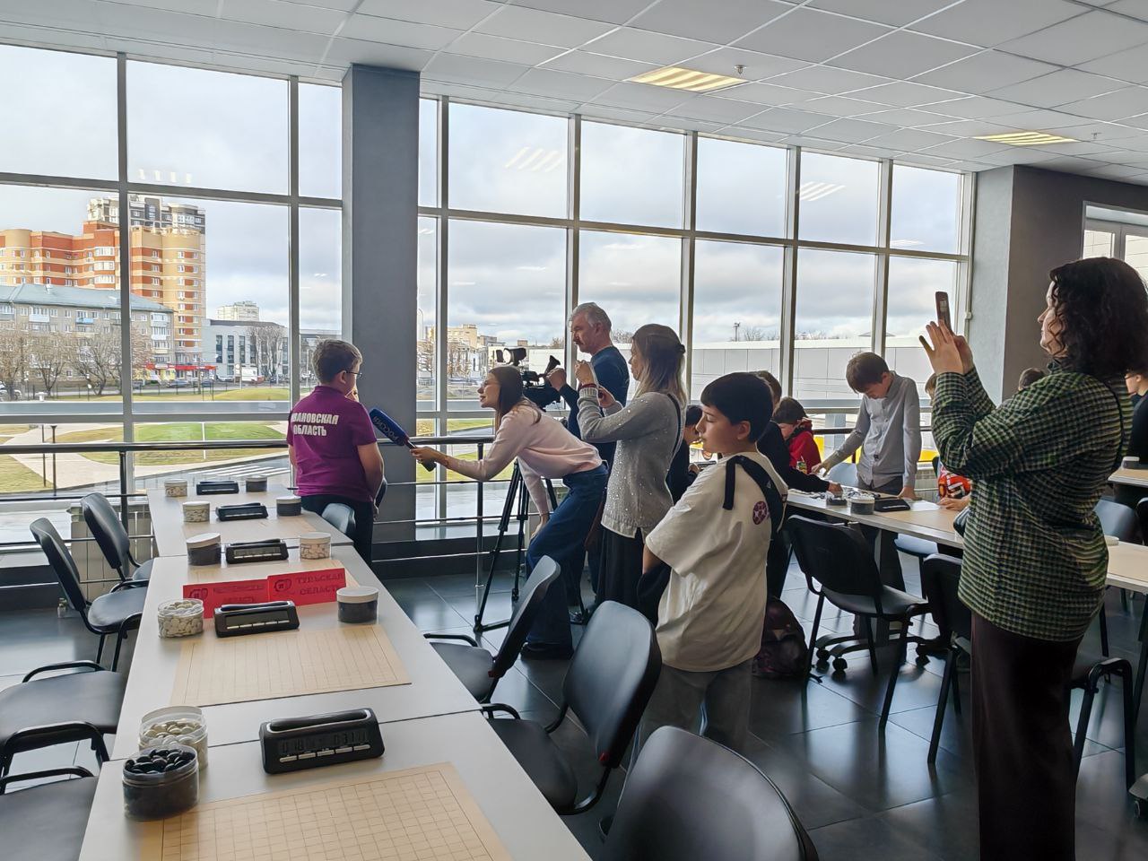 Уже по сложившейся приятной традиции процедур регистрации (на личных соревнованиях ребята получили индивидуальные подарки: пледы или подушки от спонсоров) всем участникам вручили «набор радости»: сок, шоколадка и леденцы. Счастливые и довольные, дети сели играть. В перерывах между турами юные ивановские таланты успели дать интервью местному телеканалу (двое призеров Первенства – из г. Иваново). а все участники и гости могли посмотреть настоящее представление, подготовленное цирковой студией «Арлекино».