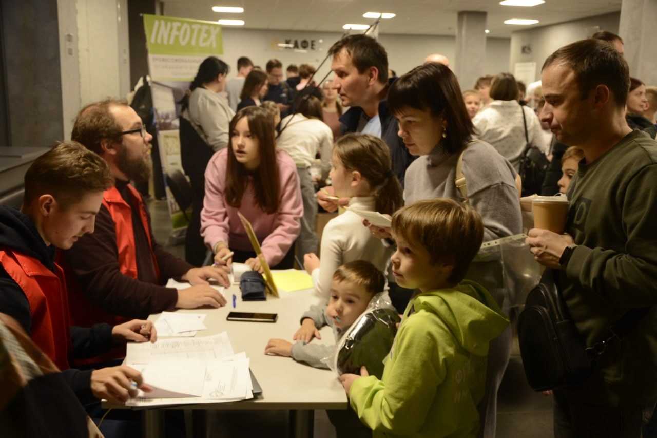 Но вернемся во Дворец спорта. Еще только 10 утра, а работа кипит: готовятся места для игротеки (те, кто закончит играть раньше, смогут провести время за настольными играми или мастер-классами), в большом зале проверяют звук перед открытием, и все готово для встречи первых юных спортсменов. С 10:30 появляются родители, дети, тренеры и сопровождающие – можно приступать к регистрации участников!
