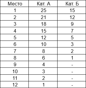 Участники, занявшие первые 8 или 12 мест получают зачётные очки в соответствии с таблицей: